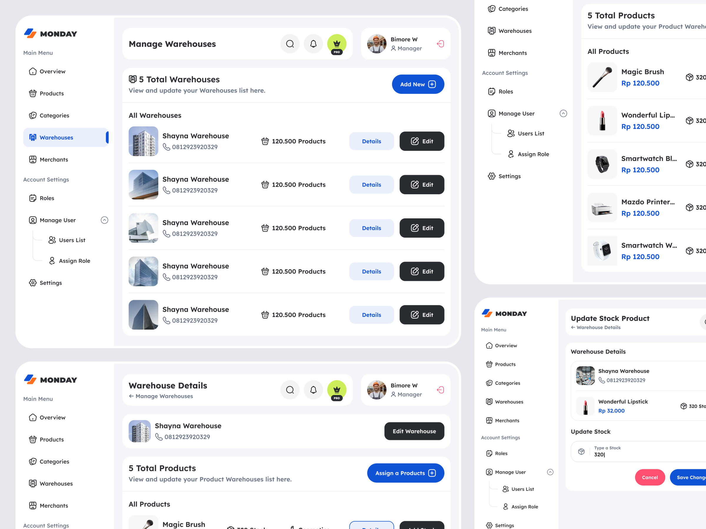 Monday Merchants & Warehouse - Manage Warehouse [Manager] Screen Design