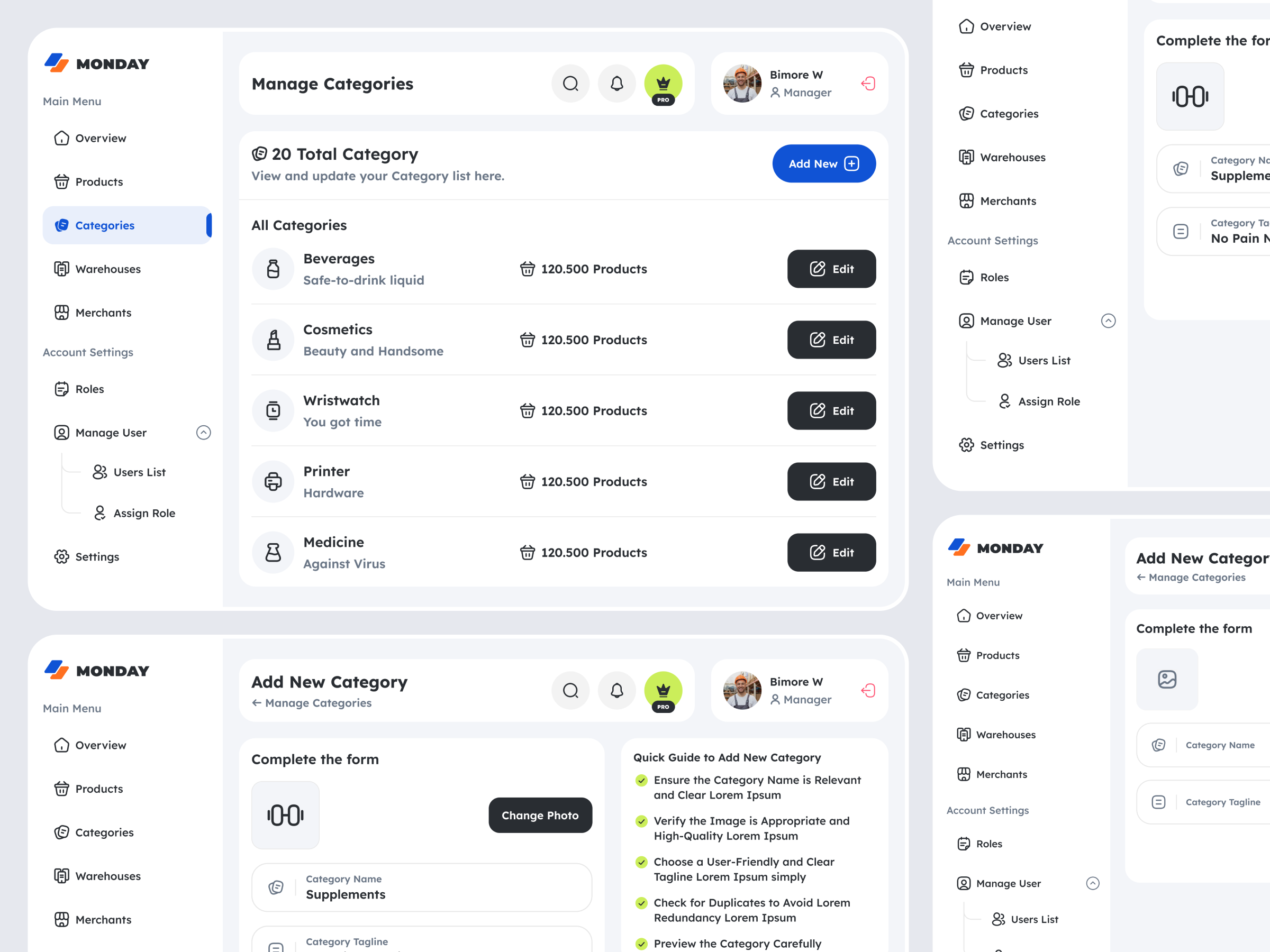 Monday Merchants & Warehouse - Manage Categories[Manager] Screen Design