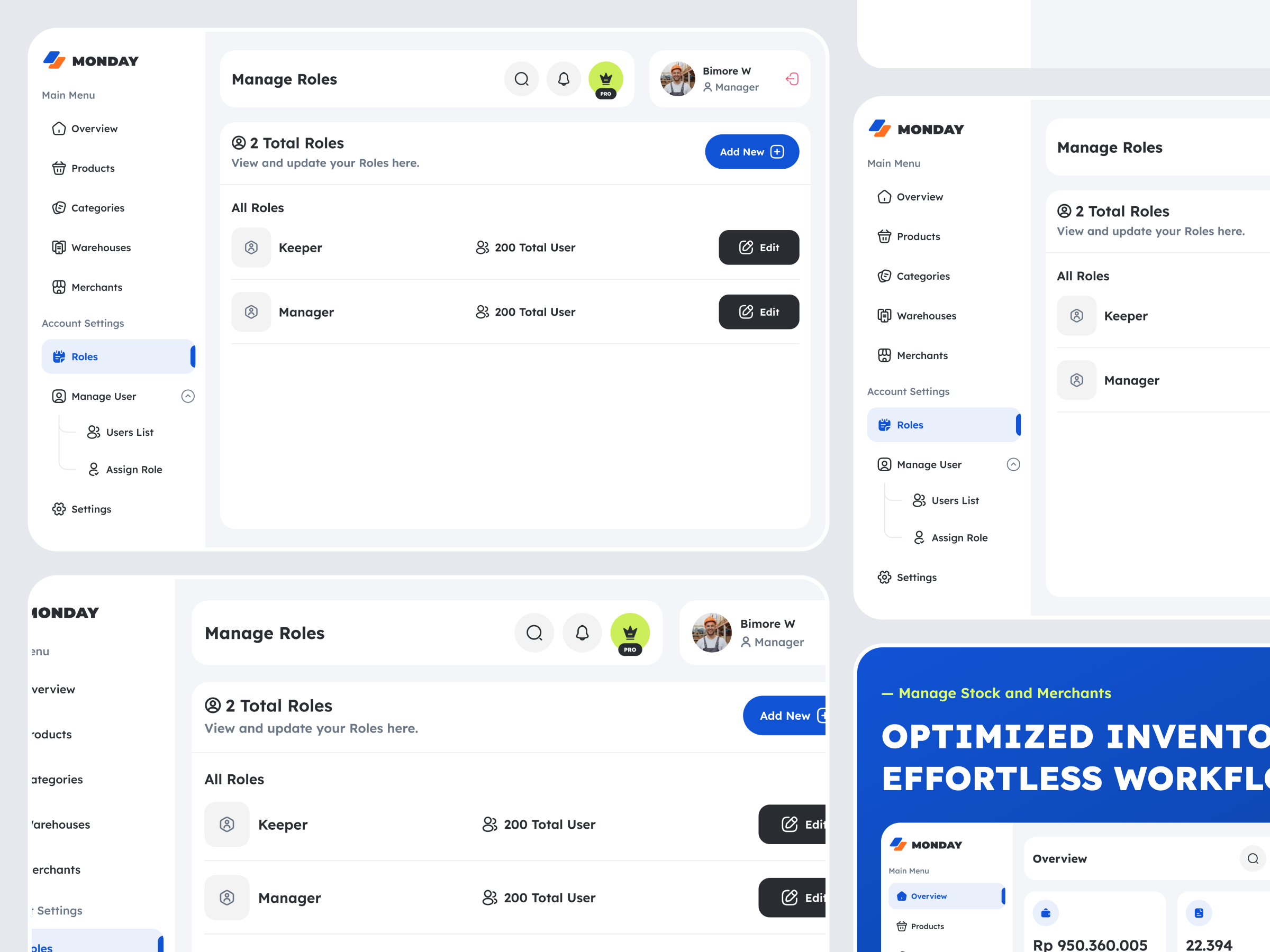 Monday Merchants & Warehouse - Manage Roles [Manager] Screen Design