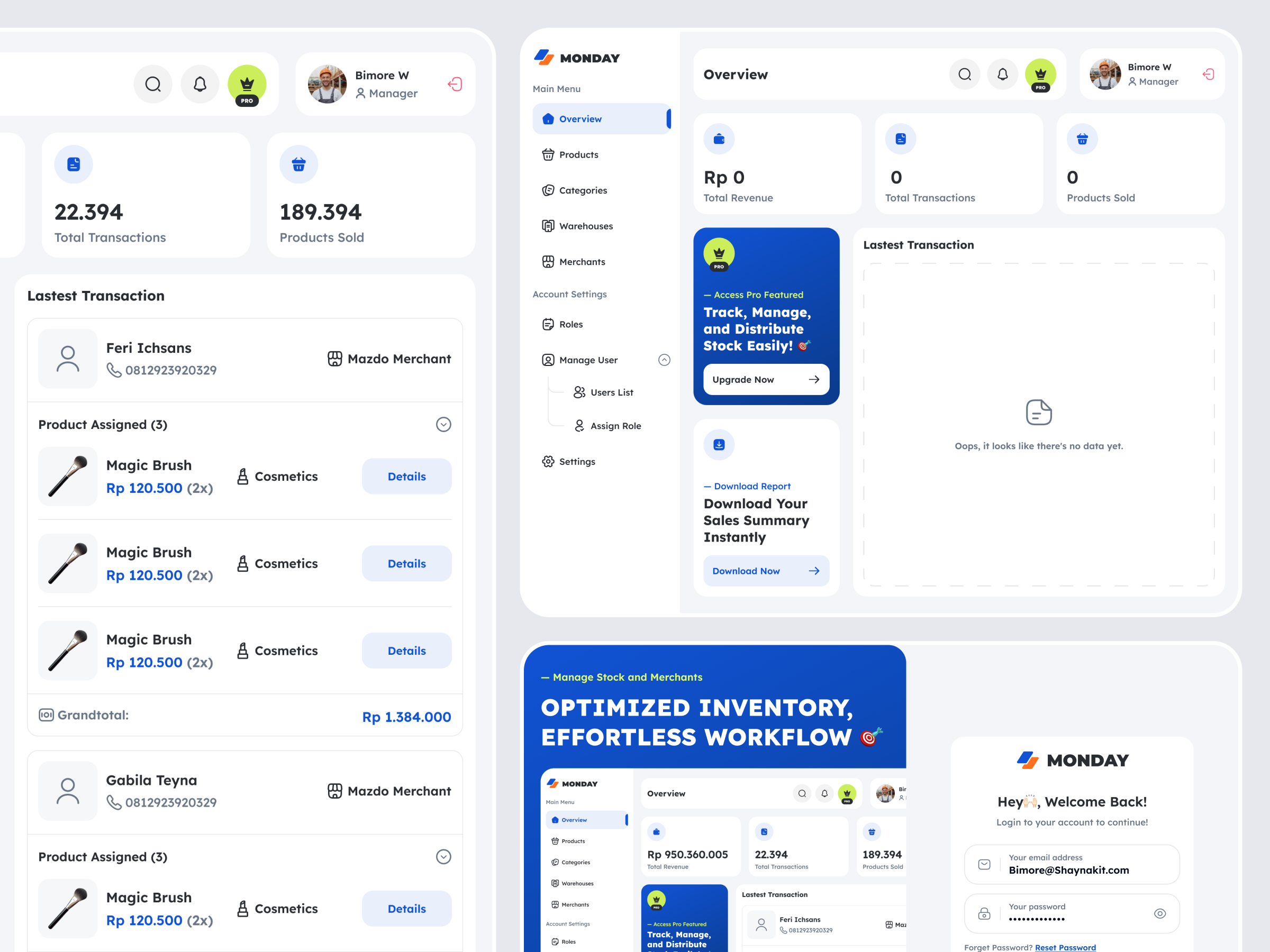 Monday Merchants & Warehouse - Overview [Manager] Screen Design
