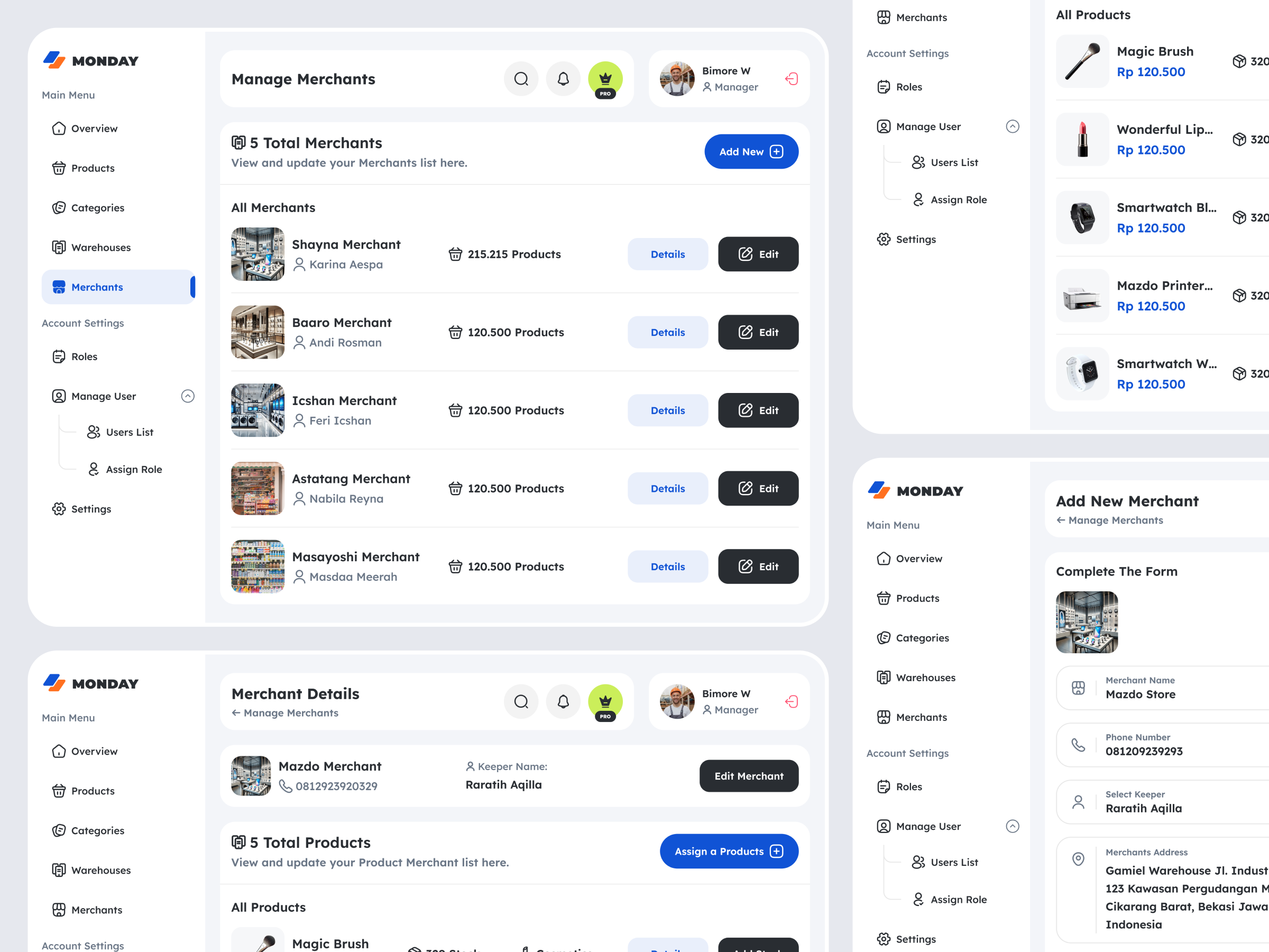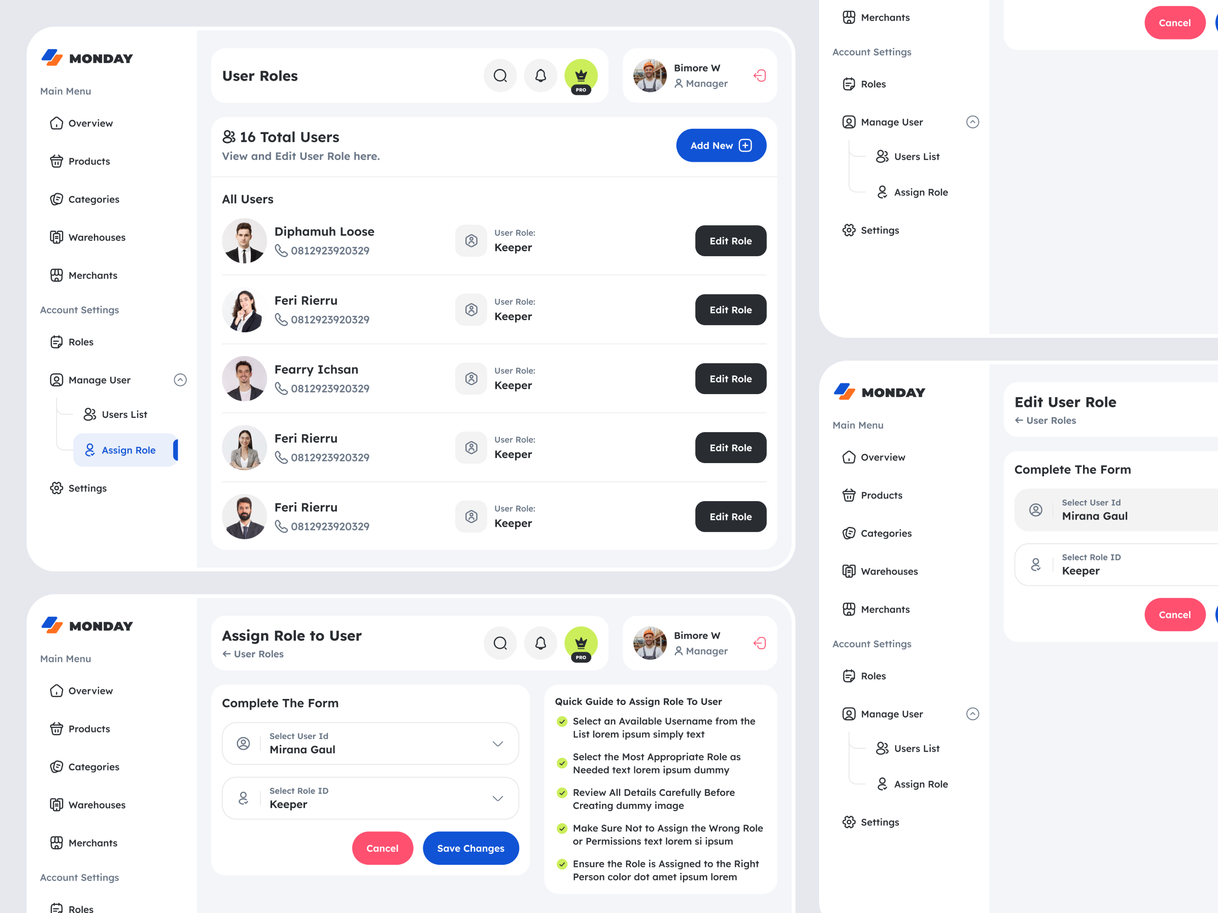 Monday Merchants & Warehouse - Assign Role [Manager] Screen Design