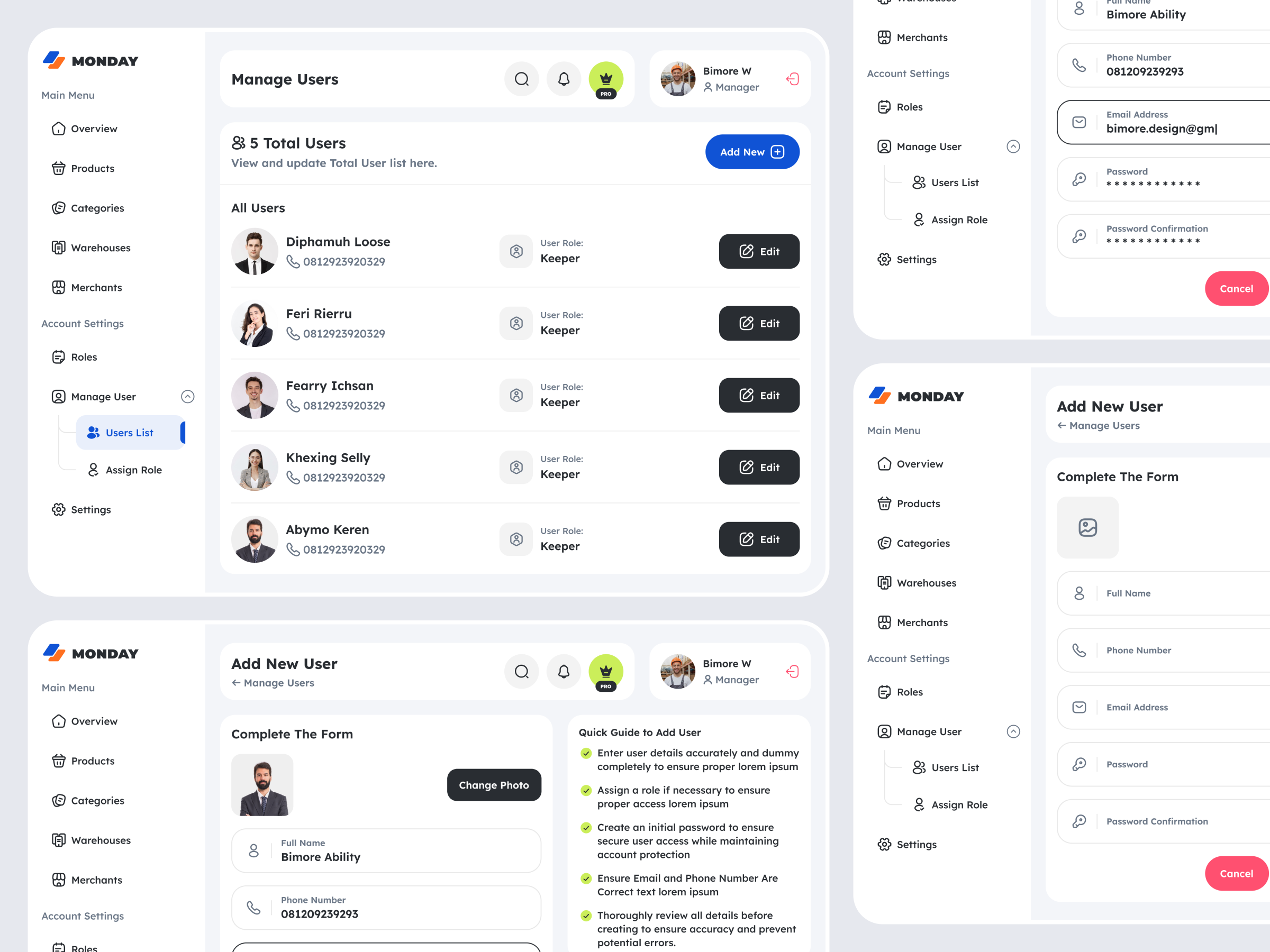 Monday Merchants & Warehouse - Manage Users [Manager] Screen Design