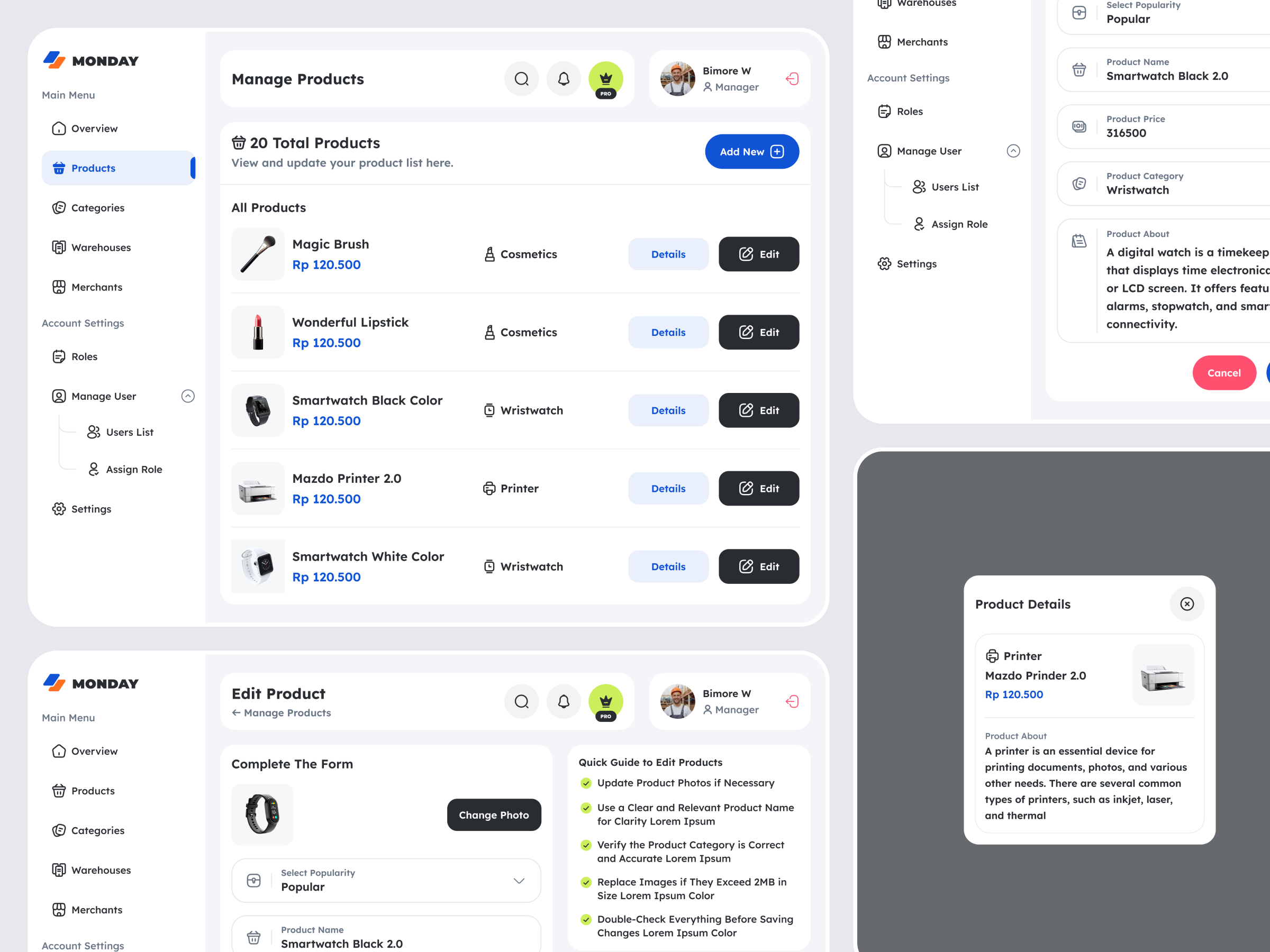 Monday Merchants & Warehouse - Manage Product [Manager] Screen Design